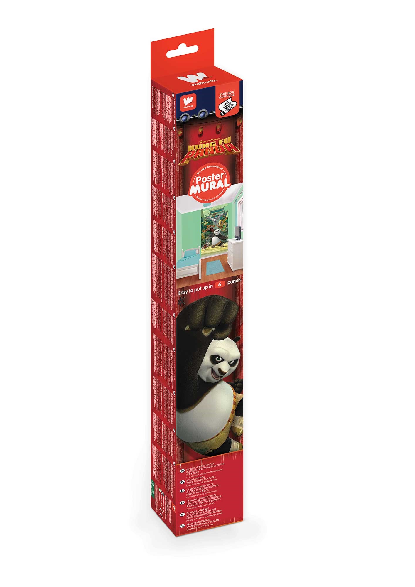 Tapeta składa się z 6 elementów. Całość jest bardzo łatwa w montażu - montuje się ją na tradycyjnym kleju do tapet. Powierzchnia jest zmywalna. Produkt zapakowany jest w ozdobne pudełko z grubego kartonu.